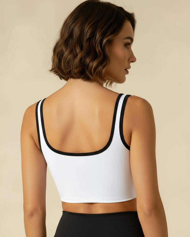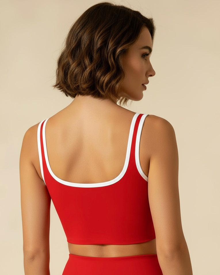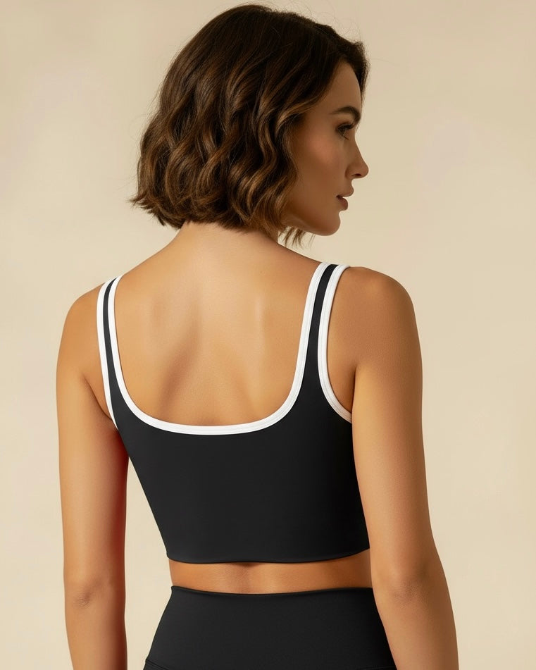 Elevated, versatile, and designed to move with you — The Rhythm Top is crafted from a seamless nylon blend with just the right stretch for comfort and support. Featuring a full cup with removable chest pads and fixed double-shoulder straps, it offers a secure, flattering fit for both sports and leisure.